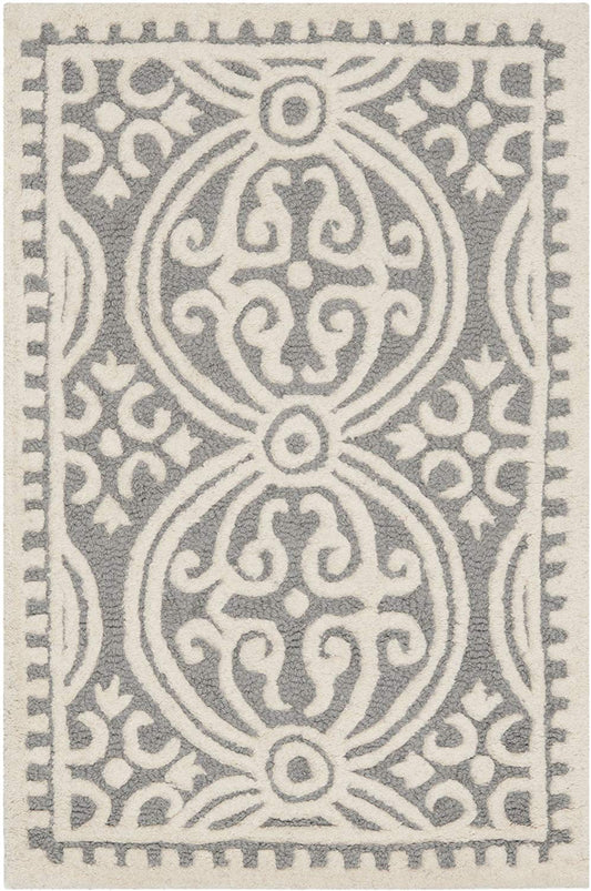 Handmade Cotton Soft Rug, Ivory / Grey