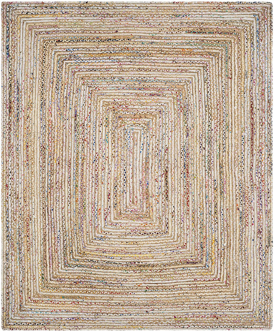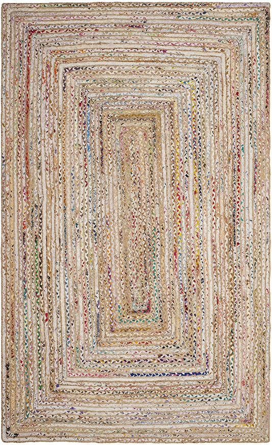 Handmade Boho Braided Jute Cotton Area Rug, Beige / Multi