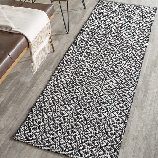 Handmade Cotton Rug, Ivory / Black