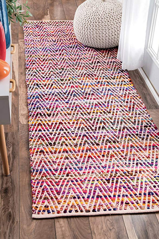 Handwoven Chevron Pattern Soft Magenta Texture Area Rug