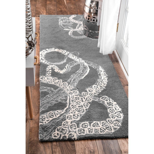 Handmade Wool Silk Octopus Pattern Gray Soft Area Rugs
