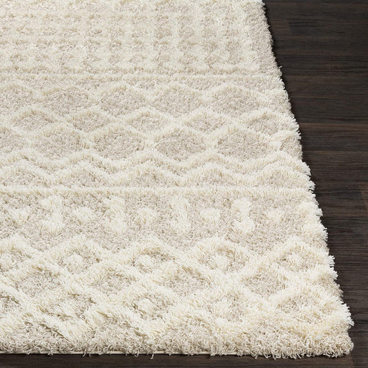 Hapsburg Beige Soft Shag Area Rug, Light Gray