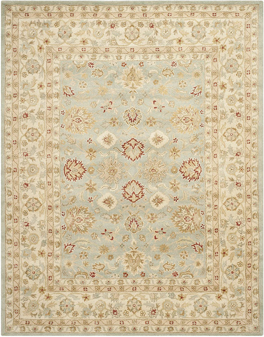 Handmade Traditional Oriental Premium Wool Area Rug, Grey Blue / Beige