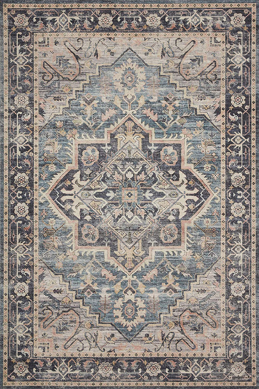 Helena Polyester and Cotton Trditional Soft Area Rug Blue