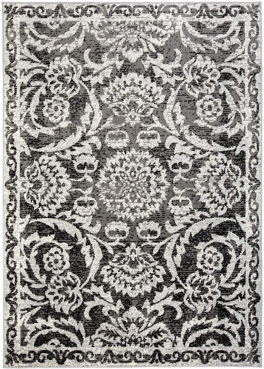 Kashan King Collection Floral Indoor Area Rug Grey/Black