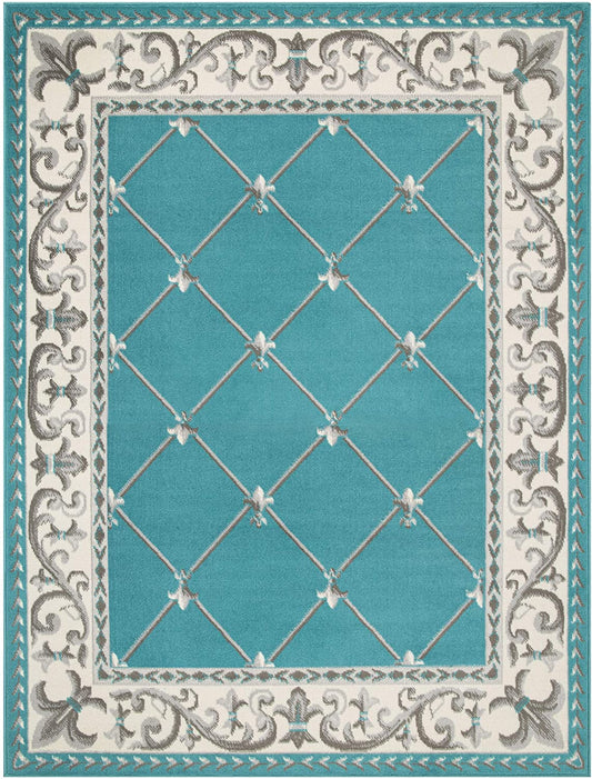 Kashan King Collection Checkered Area Rug Blue and Beige