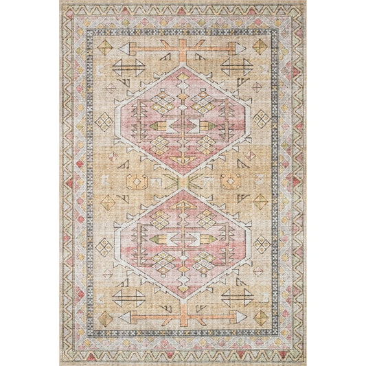 Leanne Aztec Distressed Printed Area Rug - Gold/Blush