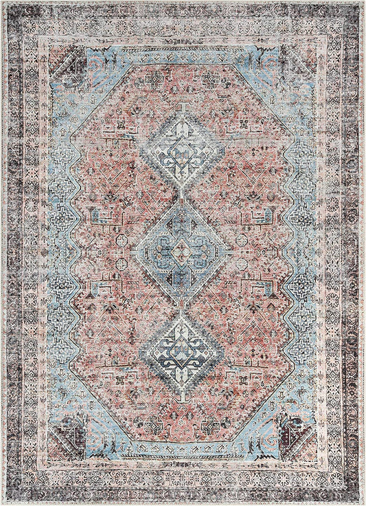 Leanne Traditional Distressed Printed Area Rug - Sea/ Rust