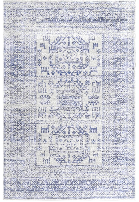 Light Blue Machine Washable Distressed Vintage Soft Area Rug
