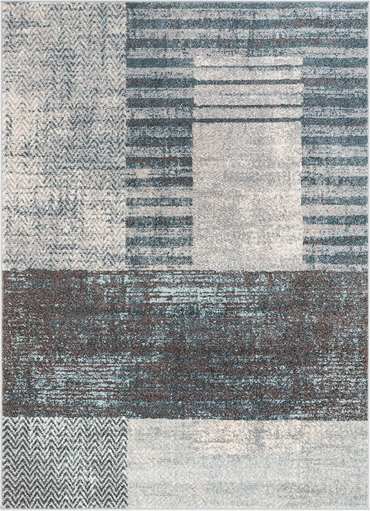 Loket Grey Modern Geometric Boxes & Stripes Pattern Area Rug
