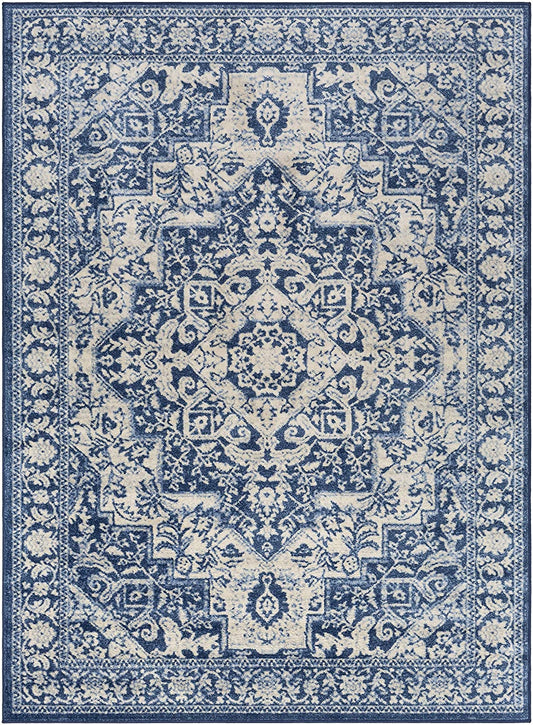Loren Collection Vintage Printed Persian Soft Area Rug 1'-6" x 1'-6" Square Brick/Midnight
