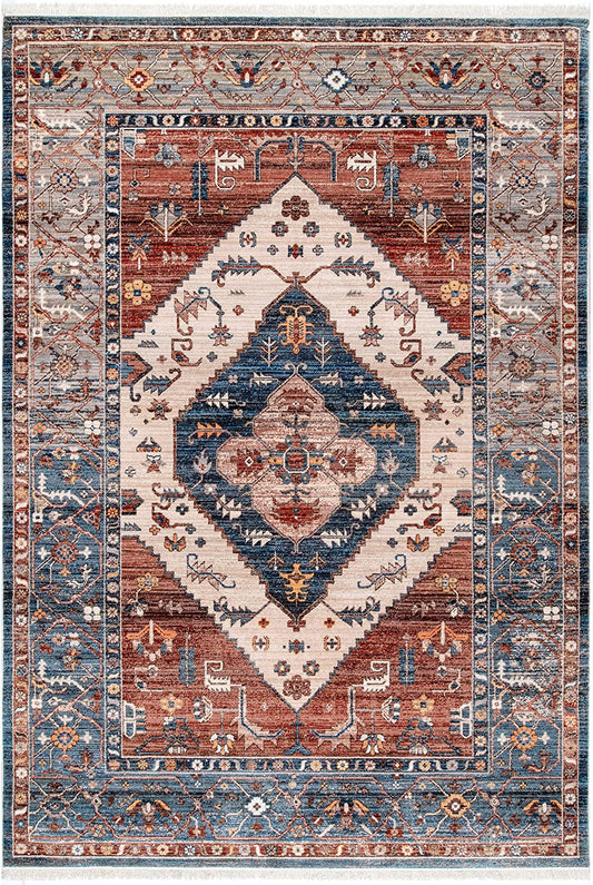 Lyndhurst Collection Traditional Oriental Non-Shedding Stain Resistant Living Room Bedroom Soft Area Rug Black / Red