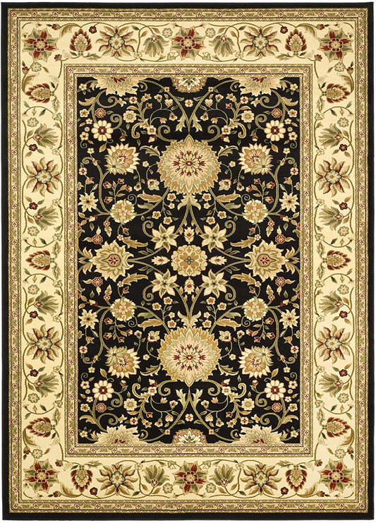 Lyndhurst Collection Traditional Oriental Non-Shedding Stain Resistant Living Room Bedroom Soft Area Rug Black / Ivory