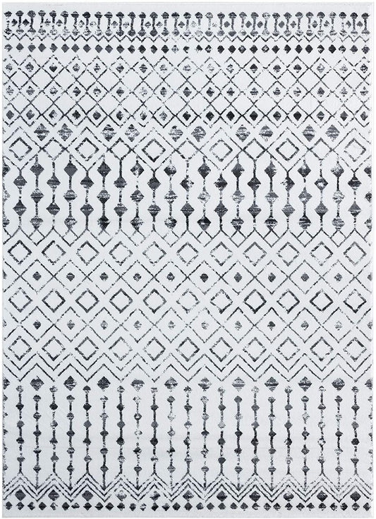 Magnolia Moroccan Grey Off White Abstract Area Rug