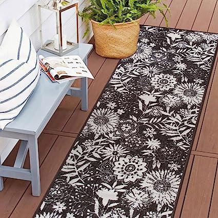 MajorcaContemporary Floral Flowers Non-Shedding Outdoor Rugs - 2' x 7' (Gray)