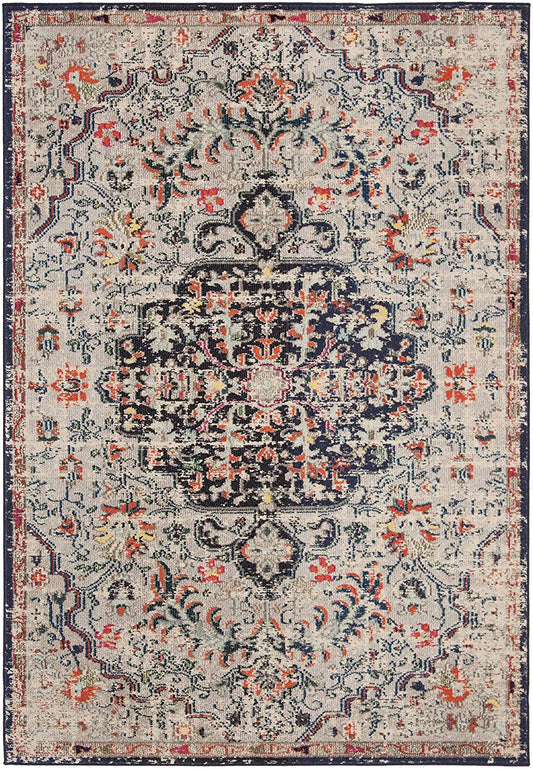 Madison Collection Boho Chic Medallion Distressed Non-Shedding Stain Resistant Living Room Bedroom Area Rug Beige / Black