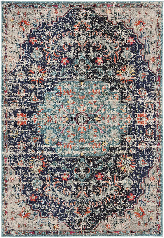 Madison Collection Boho Chic Medallion Distress Area Rug Black / Teal