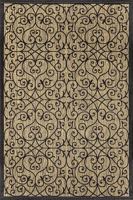 Madrid Vintage Filigree Textured Weave Indoor/Outdoor Black/Khaki Area Rug