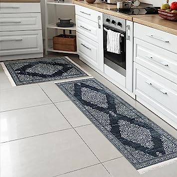 Machine Washable, Non Slip Absorbent Dirt-Resistant Durable Kitchen Runner Rug, 19.5"x31", Grey