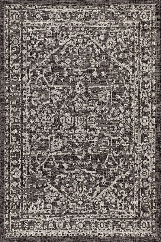 Malta Bohemian Medallion Textured Weave Indoor/Outdoor Black/Gray Area Rug