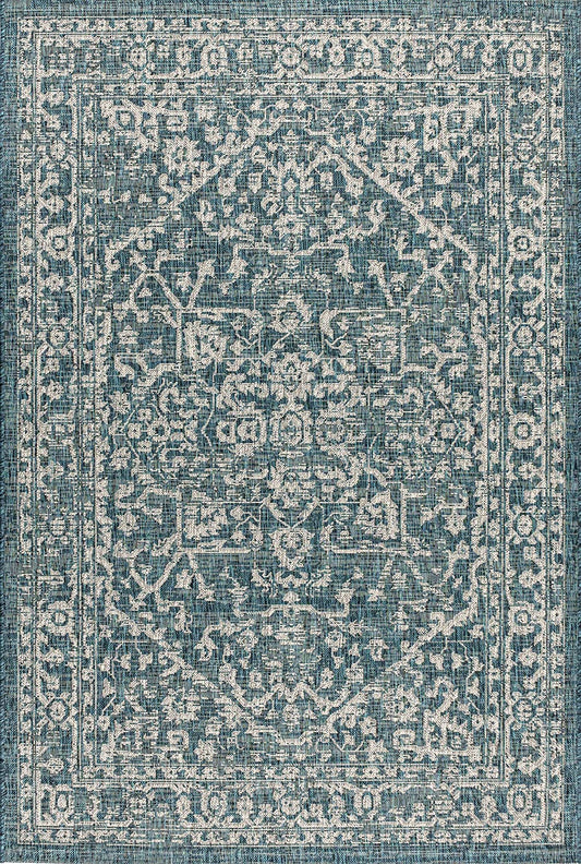 Malta Bohemian Medallion Textured Weave Indoor/Outdoor Area Rug - Teal/Gray