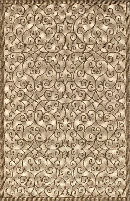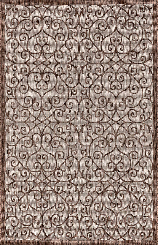 Madrid Vintage Filigree Textured Weave Indoor/Outdoor Taupe/Espresso Area Rug
