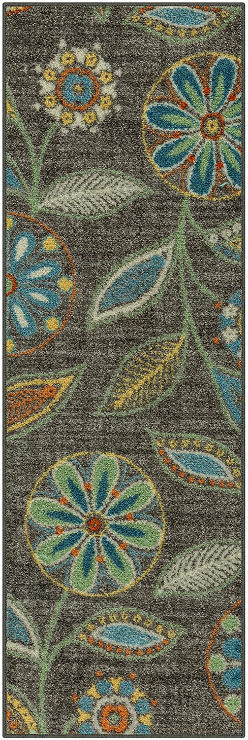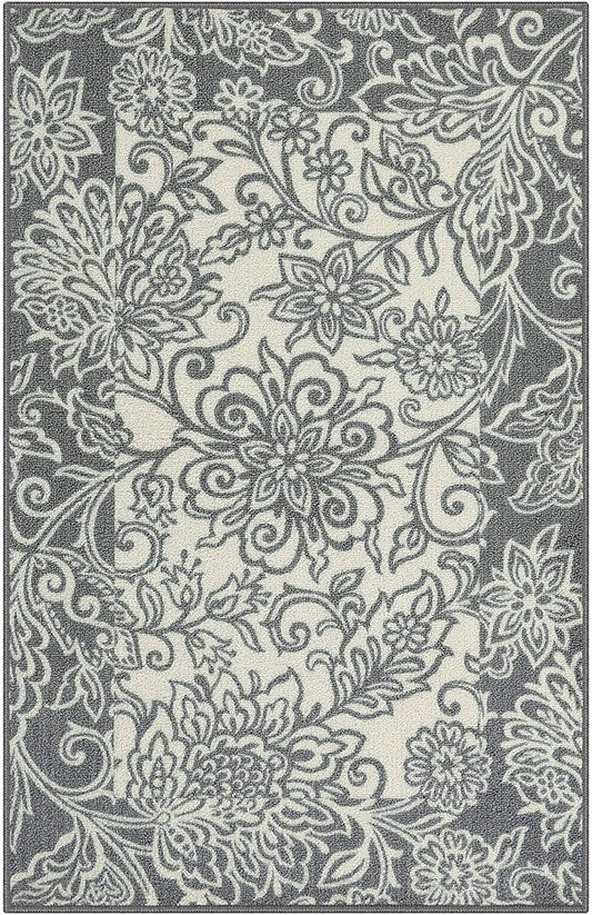 Maples Floral Non Skid Washable Grey Multi Area Rugs