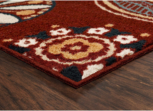 Maples Floral Non Skid Washable Merlot Multi Area Rug