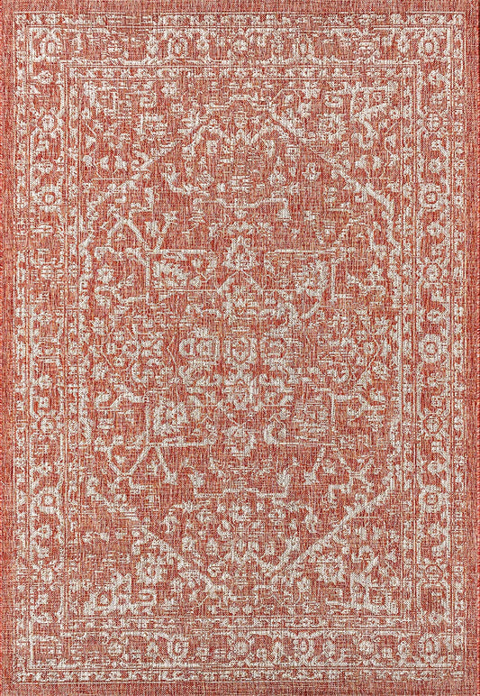 Malta Bohemian Medallion Textured Weave Indoor/Outdoor Red/Taupe Area Rug