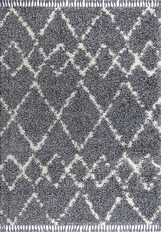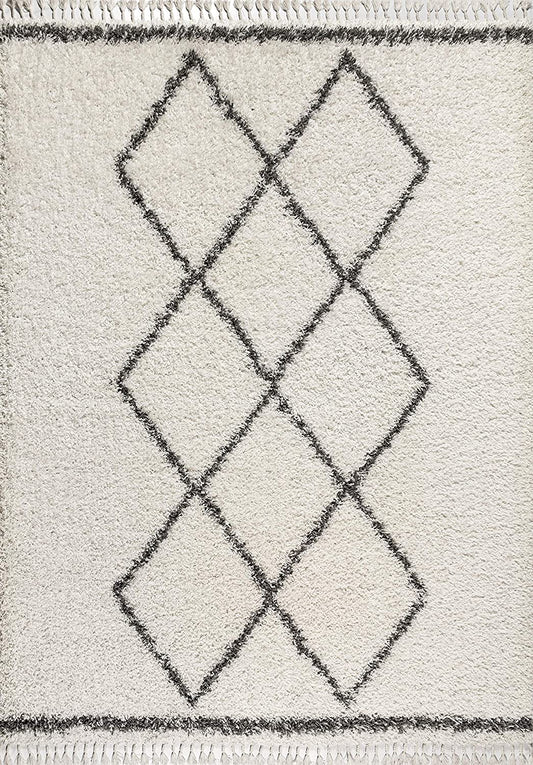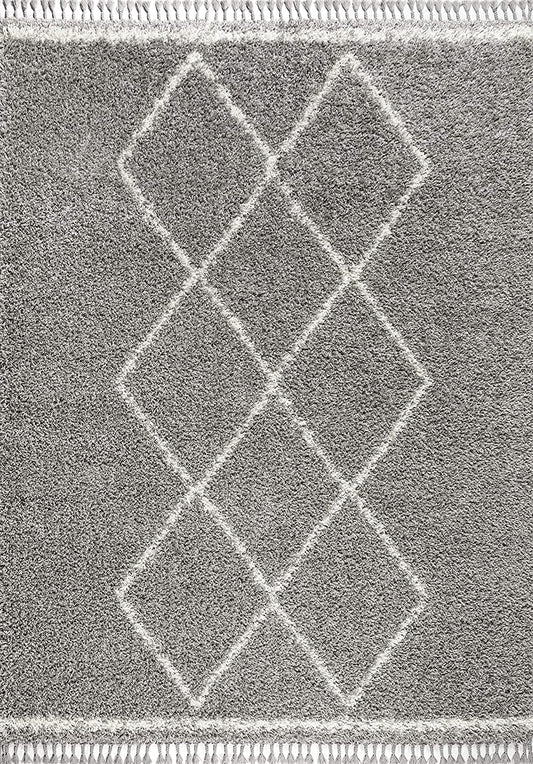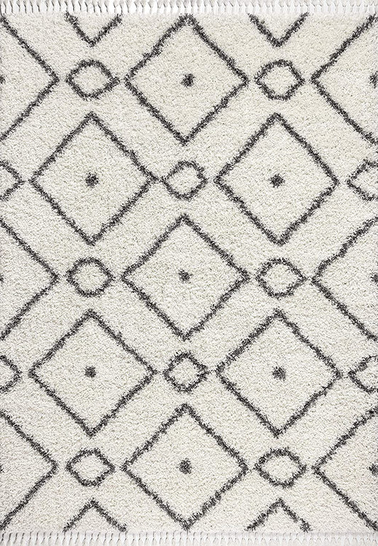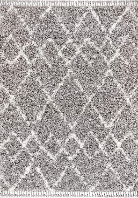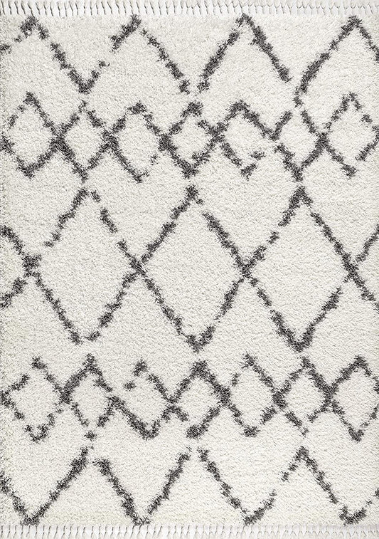 Mercer Shag Plush Tassel Moroccan Diamond Indoor Soft Area Rug Cream/Grey