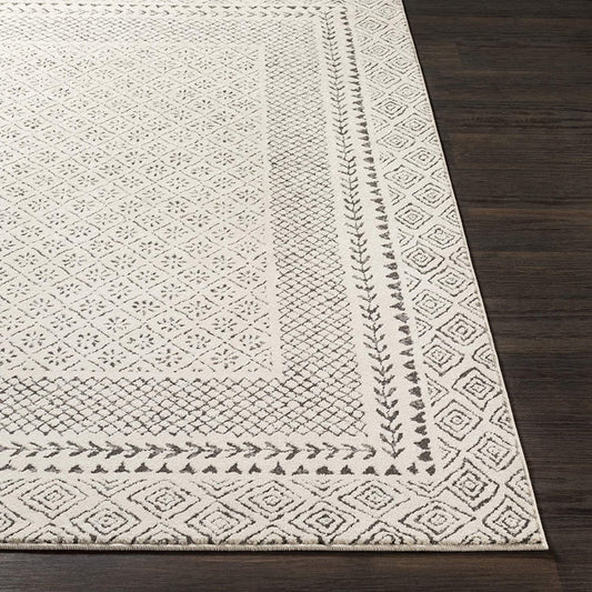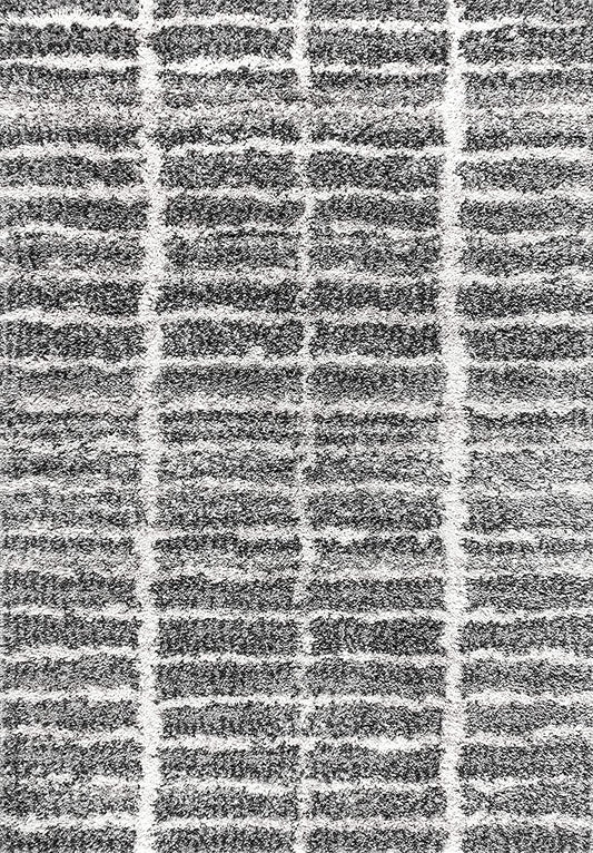 Merida Stacked Grid Shag Grey/Ivory Soft Area Rug