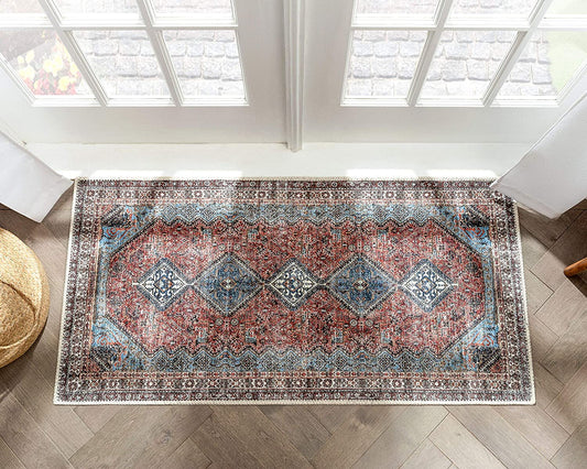 Menda Red Machine Washable Vintage Distressed Persian Soft Area Rug