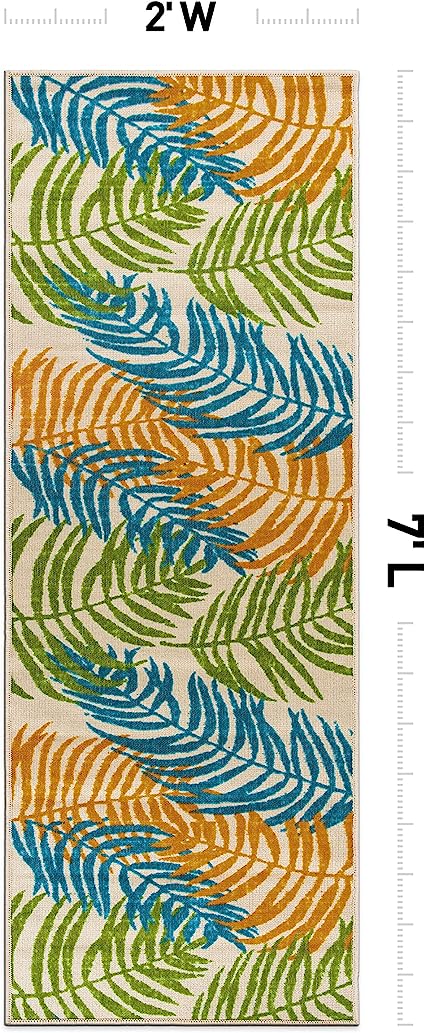 Minorca Floral Leaves Non-Shedding Outdoor Rugs - 2' x 7' Multi