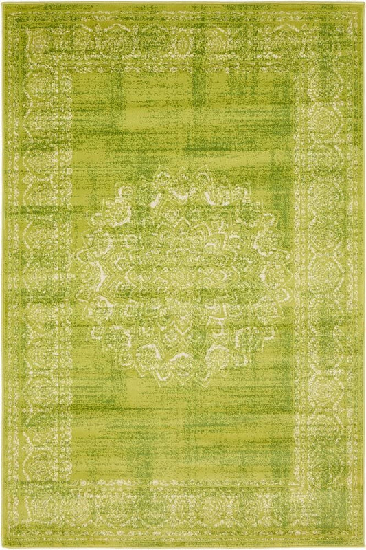 Modern Traditional Vintage Distressed Sage Green Soft Rug