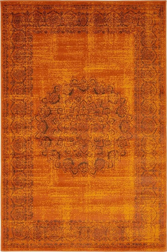 Modern Traditional Vintage Distressed Terracotta Soft Area Rug