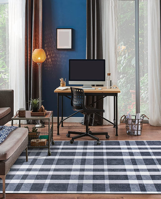 Modern Plaid Stain Resistant Flat Weave Eco Friendly Premium Recycled Machine Washable Area Rug 3'3"x5' Black