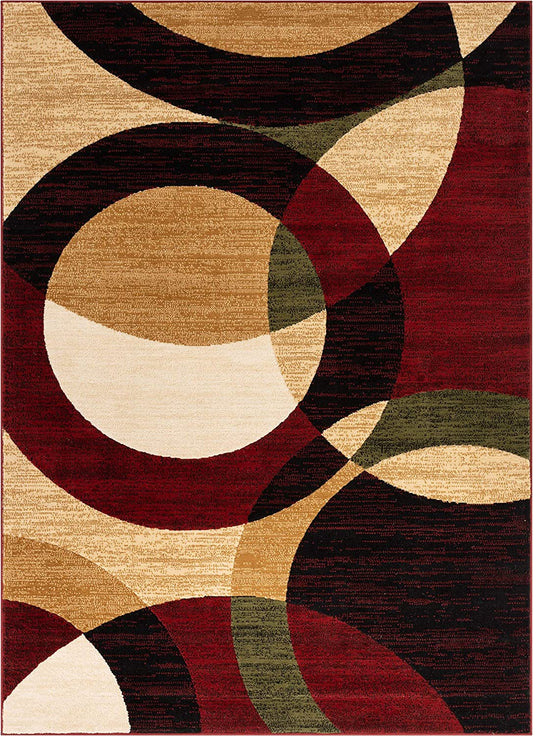 Modern Styling Shapes Circles Multi Color Red Black Beige Thick Soft Area Rug