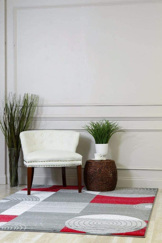 Modern Trendz Abstract Circle Grey Red Premium Soft Area Rug