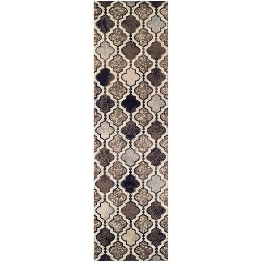 Modern Trellis Ivory Beige Brown Soft Area Rug