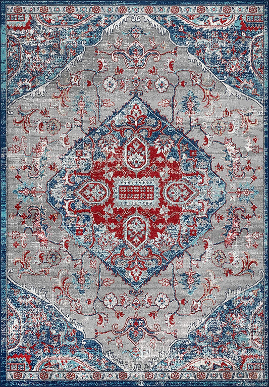 Modern Persian Vintage Medallion Red/Navy Soft Area Rug