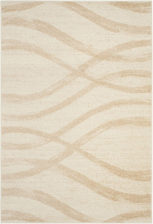 Modern Wave Distressed Soft Area Rug, Cream / Champagne