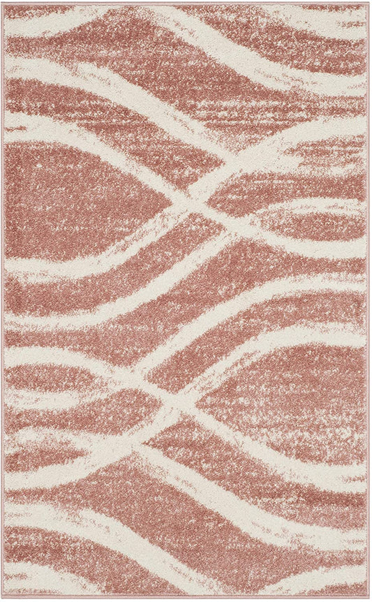Modern Wave Distressed Soft Area Rug, Rose / Cream