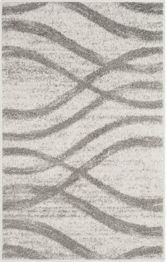 Modern Wave Distressed Soft Area Rug, Grey / Cream