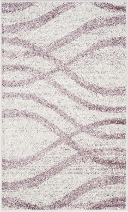 Modern Wave Distressed Soft Area Rug. Cream / Purple