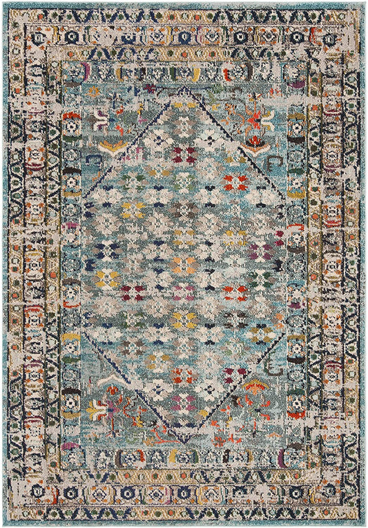 Monaco Collection Boho Chic Oriental Distressed Area Rug Blue / Light Grey