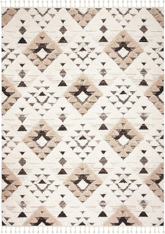 Moroccan Tassel Shag Collection Boho Soft Area Rug Ivory / Brown