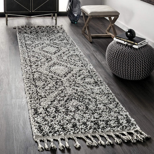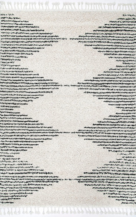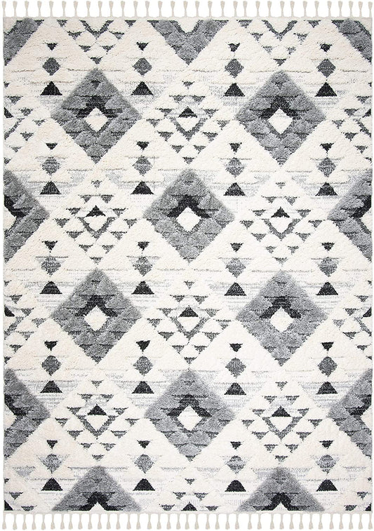 Moroccan Tassel Shag shag Area Rug Ivory / Grey