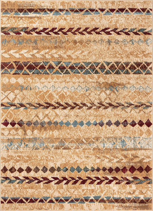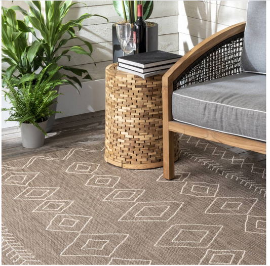 Moroccan Tribal Accent Light Brown Indoor/Outdoor Area Rugs - Durable/Easy Maintenance
