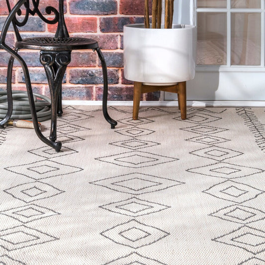 Moroccan Tribal Accent Grey Indoor/Outdoor Area Rugs - Durable/Easy Maintenance