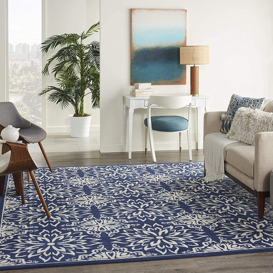 Nevis Palm Frond Indoor/Outdoor Navy/Ivory soft Area Rug